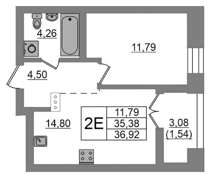 - Площадь36,92 м2