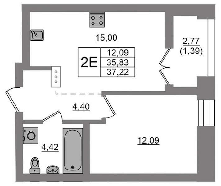 - Площадь37,22 м2