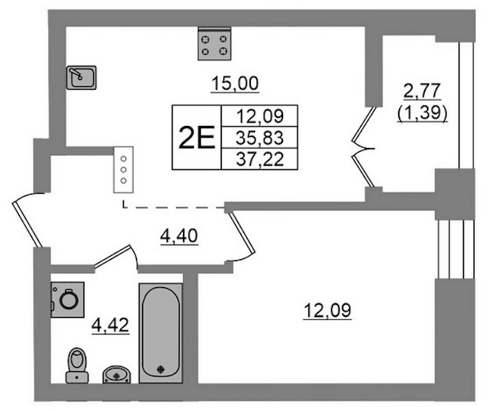 • Площадь37,22 м2