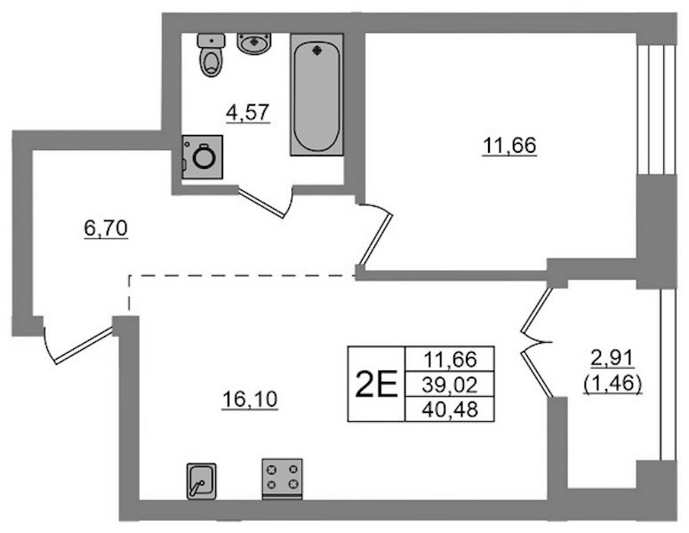 - Площадь40,48 м2