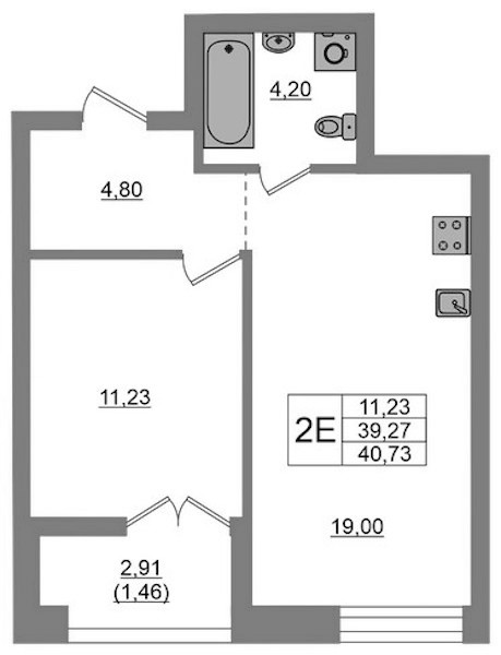 - Площадь40,73 м2
