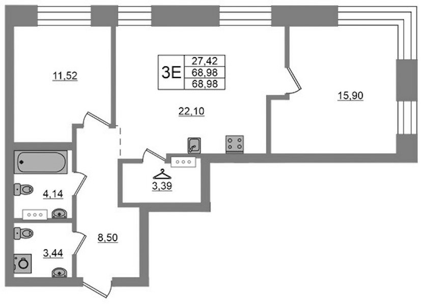 • Площадь68,98 м2