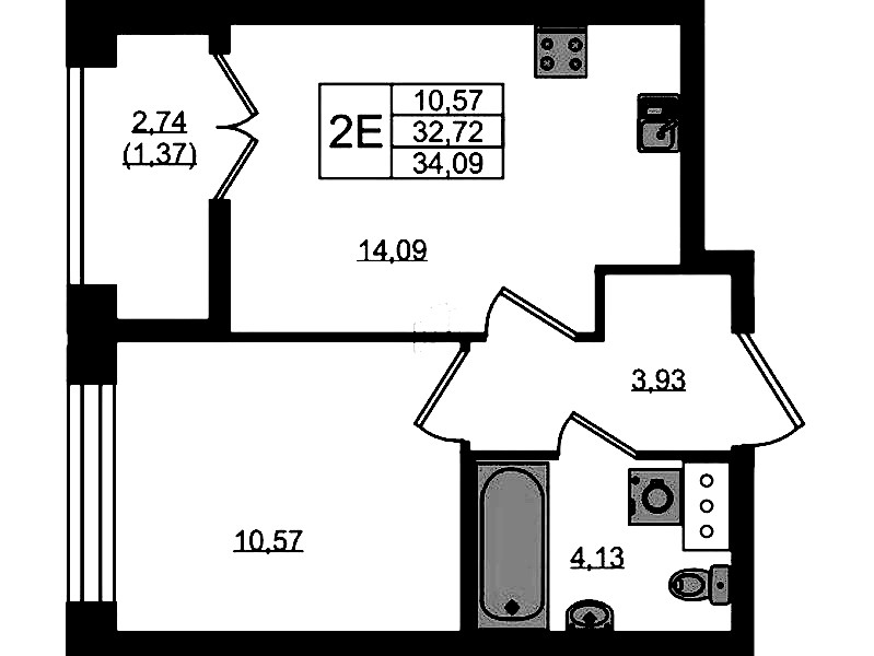 - Площадь34,09 м2