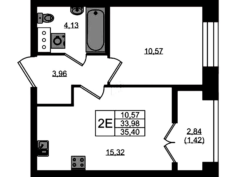 Однокомнатная квартира на 9-ом этаже 35,4 кв.м