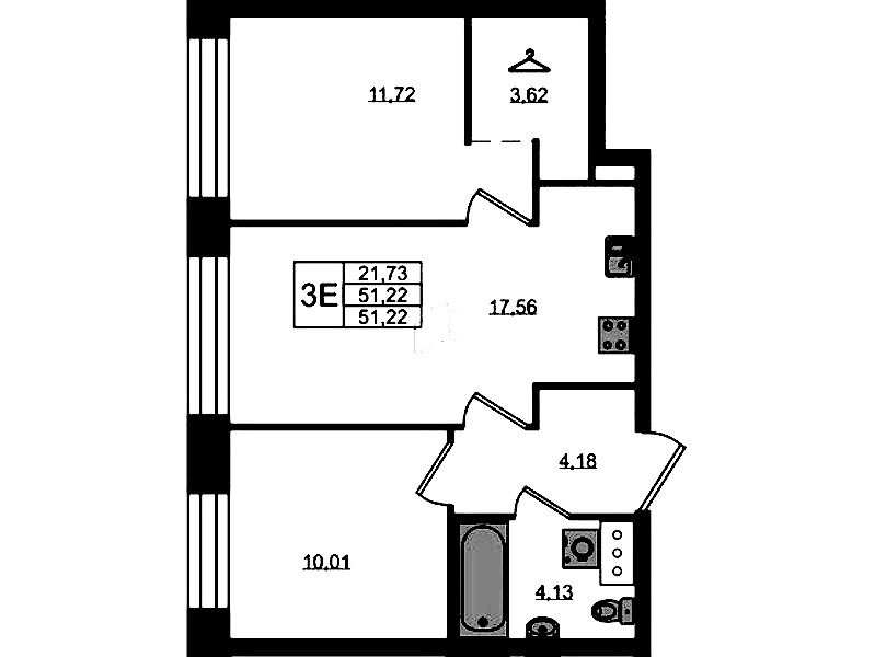 - Площадь51,22 м2