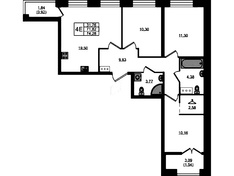 - Площадь74,28 м2