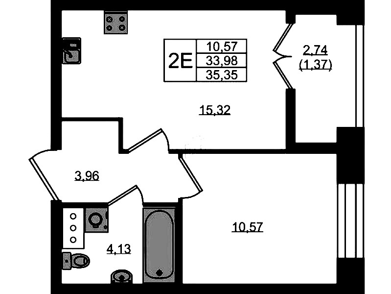 Однокомнатная квартира на 7-ом этаже 35,35 кв.м