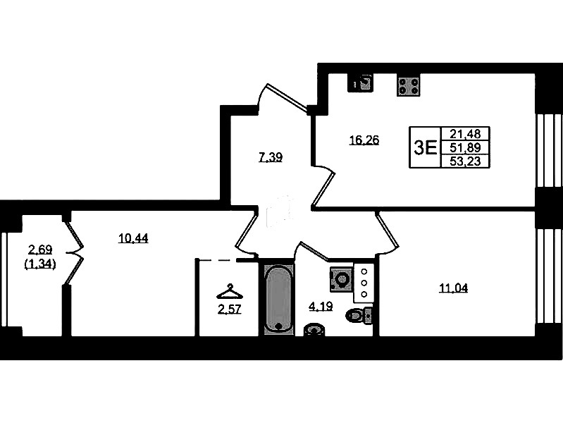 - Площадь53,23 м2