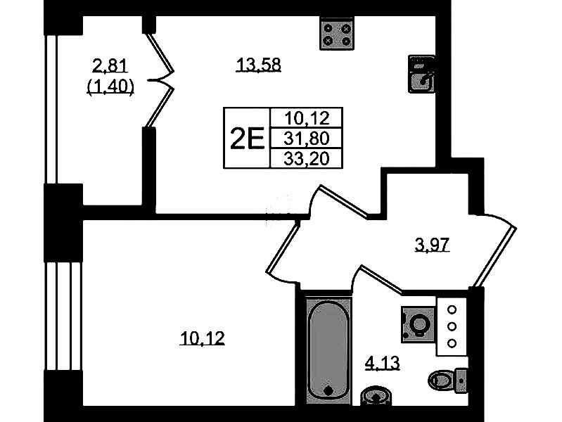 - Площадь33,2 м2