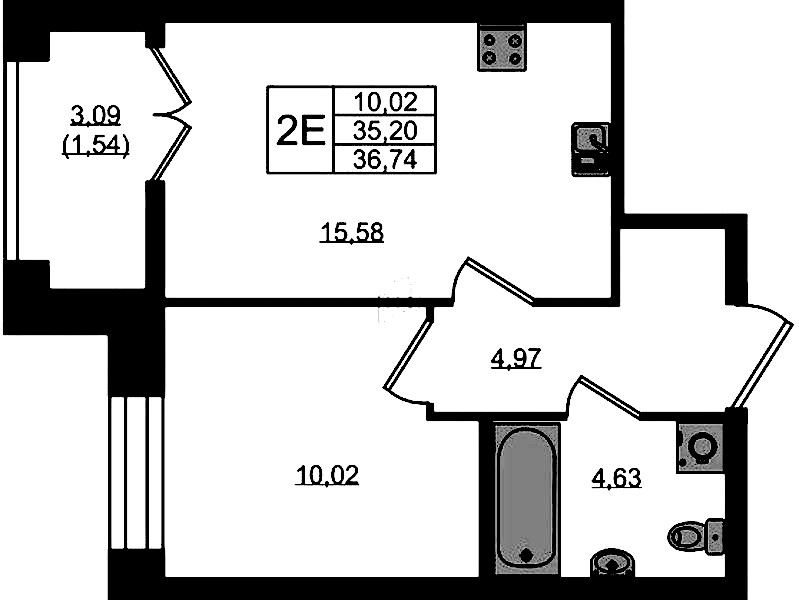 Однокомнатная квартира на 2-ом этаже 36,74 кв.м