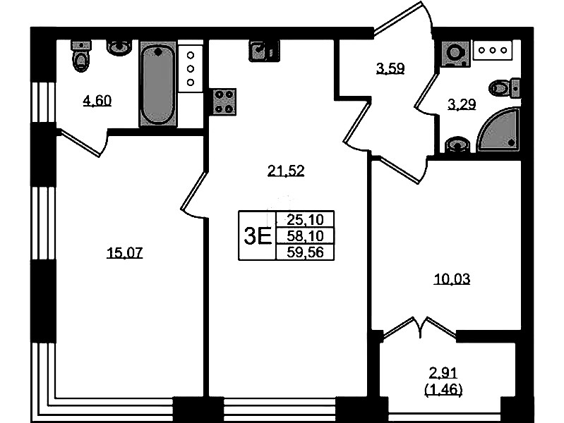 - Площадь59,56 м2
