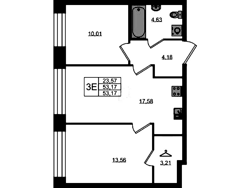 • Площадь53,17 м2