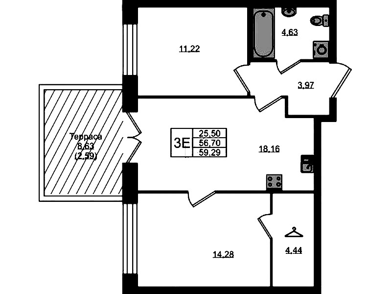 Двухкомнатная квартира на 2-ом этаже 59,29 кв.м