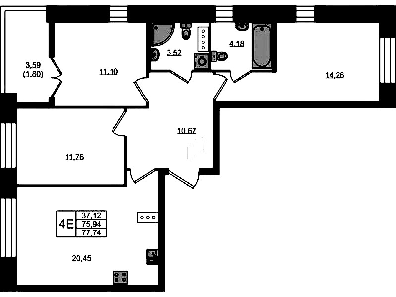 - Площадь77,74 м2