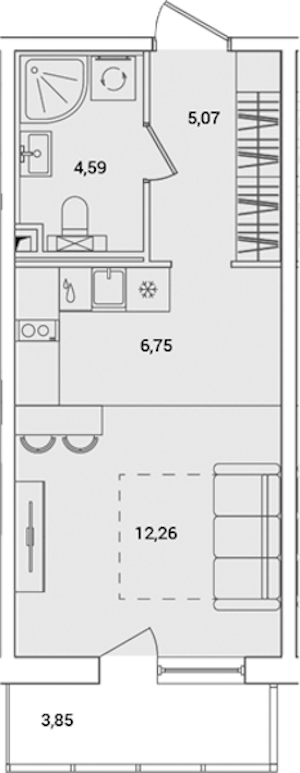 Квартира-студия на 2-ом этаже 29,83 кв.м