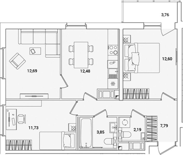 Трёхкомнатная квартира на 3-ем этаже 65,21 кв.м