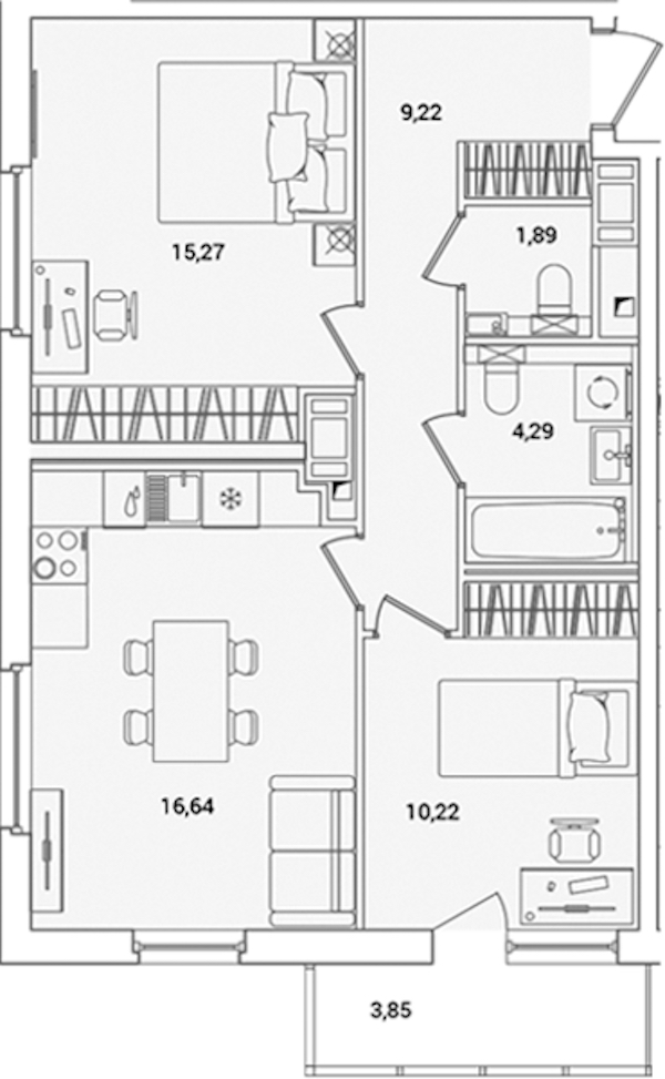 Двухкомнатная квартира на 6-ом этаже 58,69 кв.м