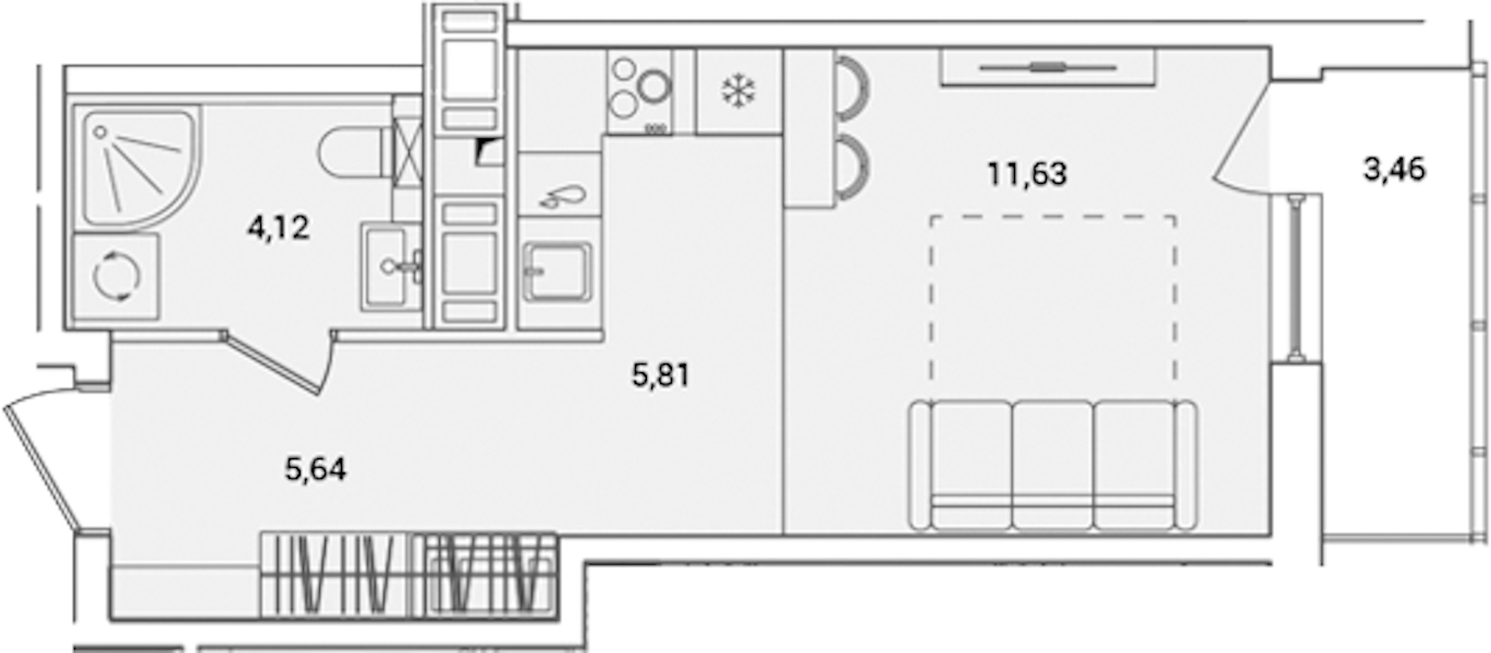 Квартира-студия на 16-ом этаже 28,93 кв.м