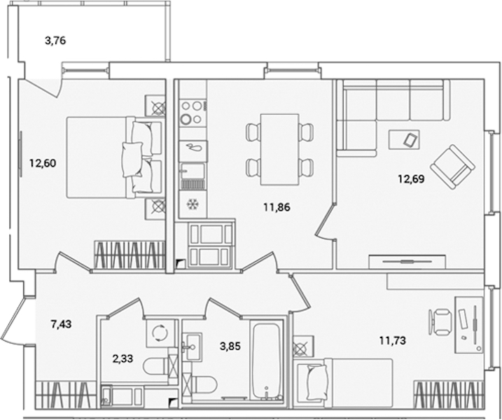 - Площадь кухни11,86 м2