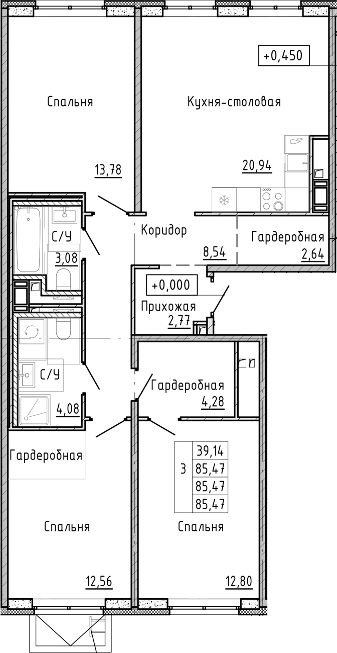 - Площадь85,47 м2