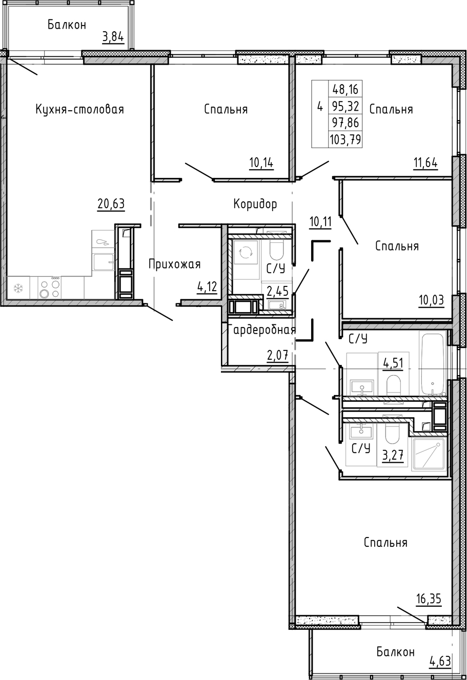 - Площадь103,79 м2