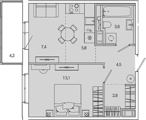 Однокомнатная квартира на 3-ем этаже 41,7 кв.м