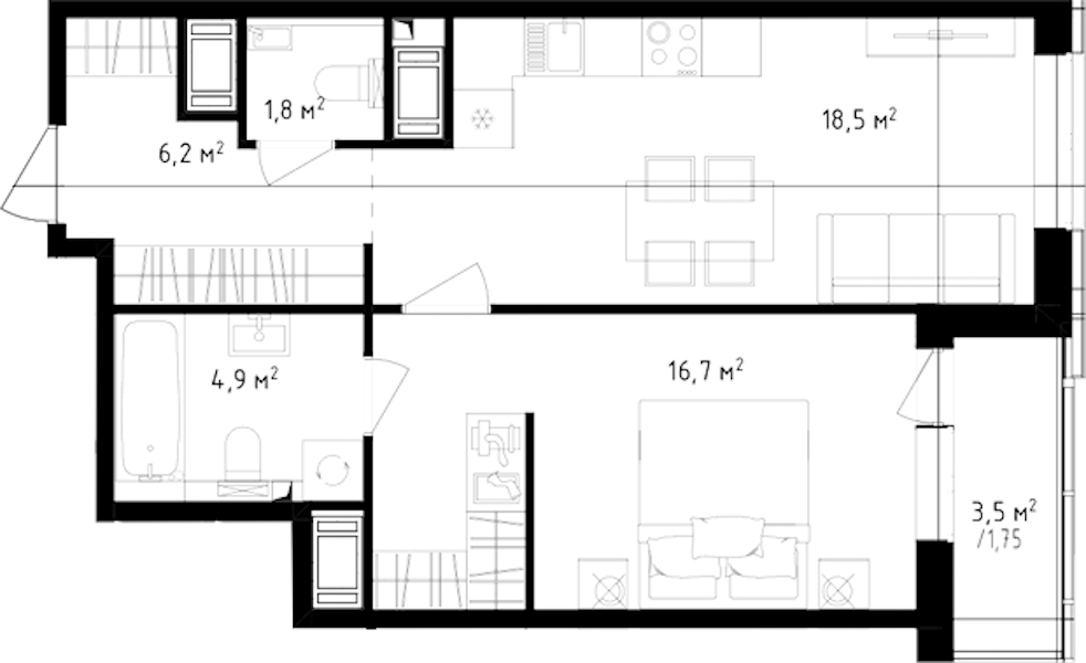 - Площадь кухни18,5 м2