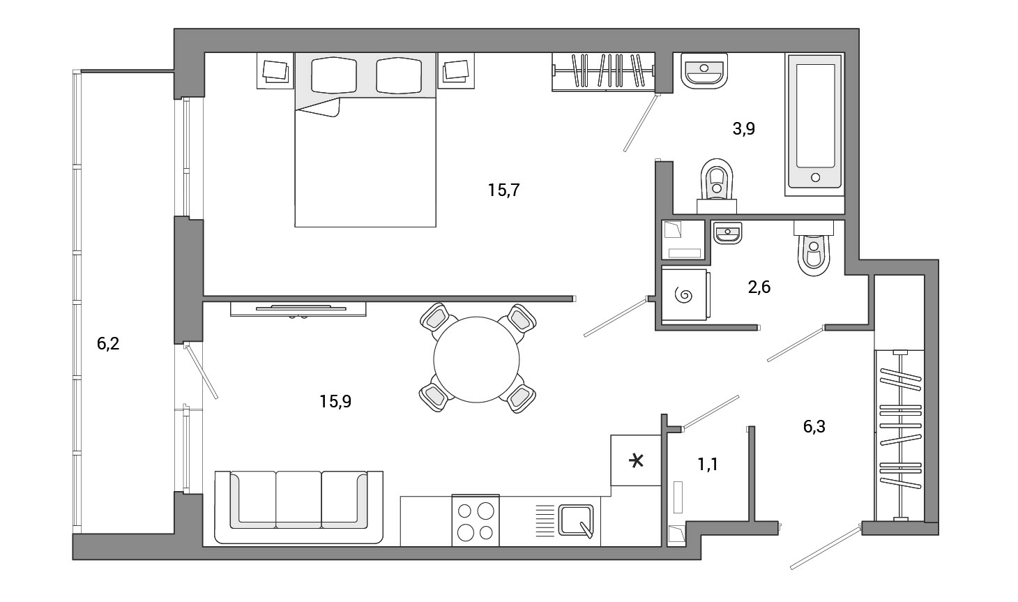 - Площадь кухни15,9 м2
