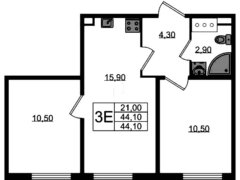 - Площадь44,1 м2