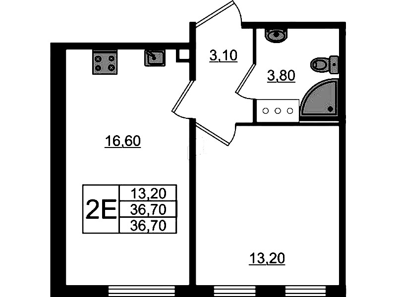 - Площадь36,7 м2