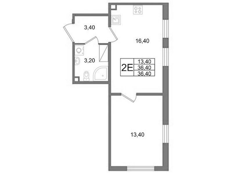 Однокомнатная квартира на 3-ем этаже 36,4 кв.м