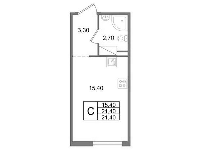 Квартира-студия на 18-ом этаже 21,4 кв.м