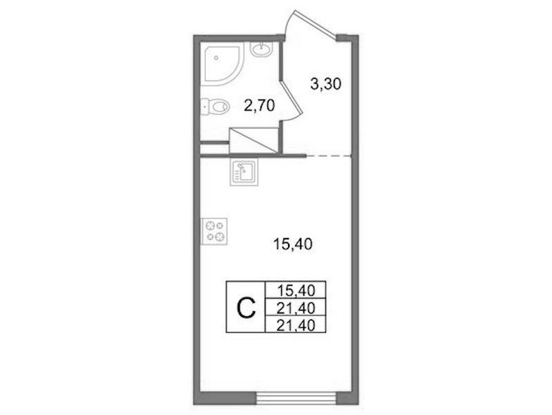 Квартира-студия на 16-ом этаже 21,4 кв.м