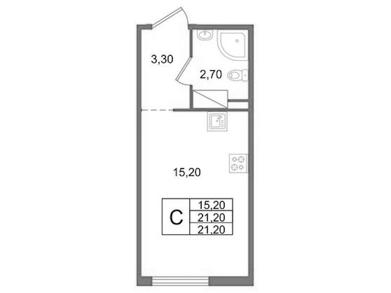 Квартира-студия на 6-ом этаже 21,2 кв.м