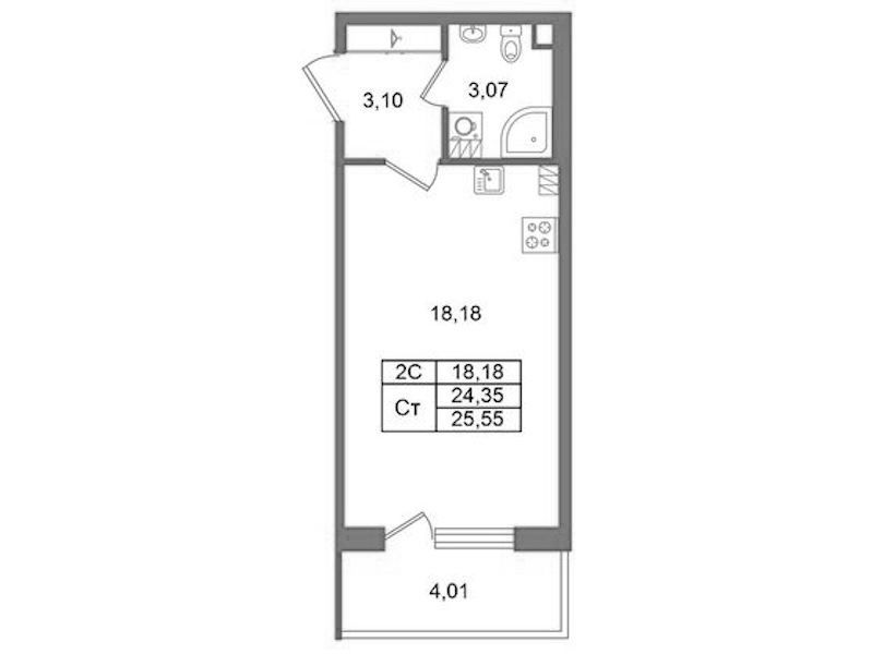 Квартира-студия на 5-ом этаже 24,35 кв.м