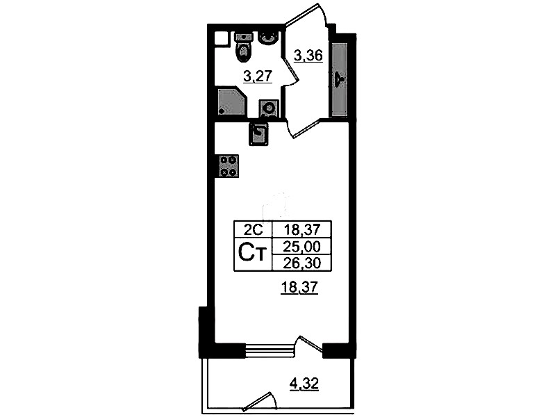 - Количество комнатСтудия
