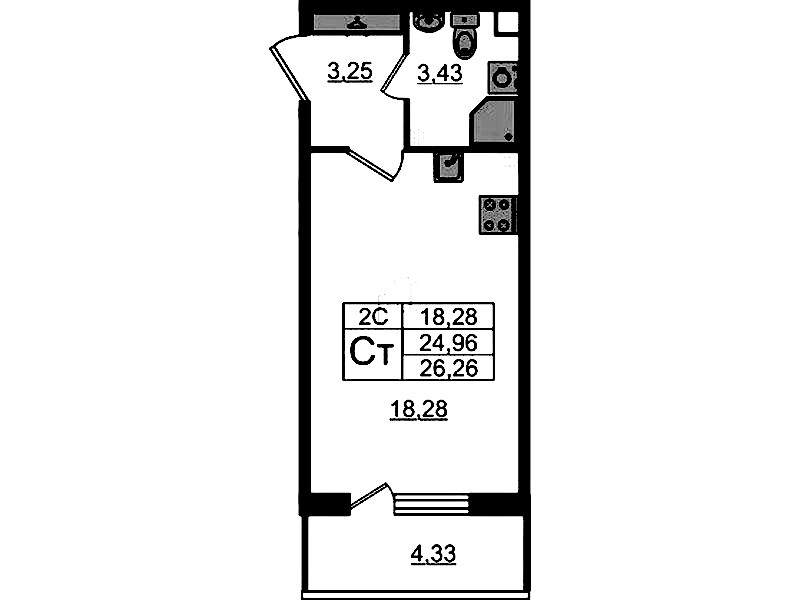 Квартира-студия на 3-ем этаже 24,96 кв.м