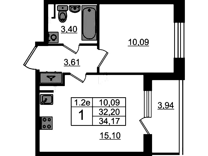 - Площадь32,2 м2
