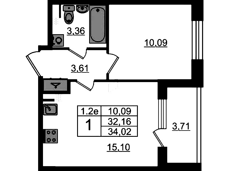 Однокомнатная квартира на 3-ем этаже 32,16 кв.м
