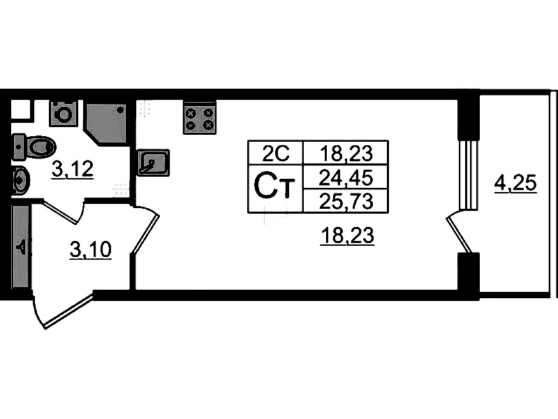 - Площадь24,45 м2