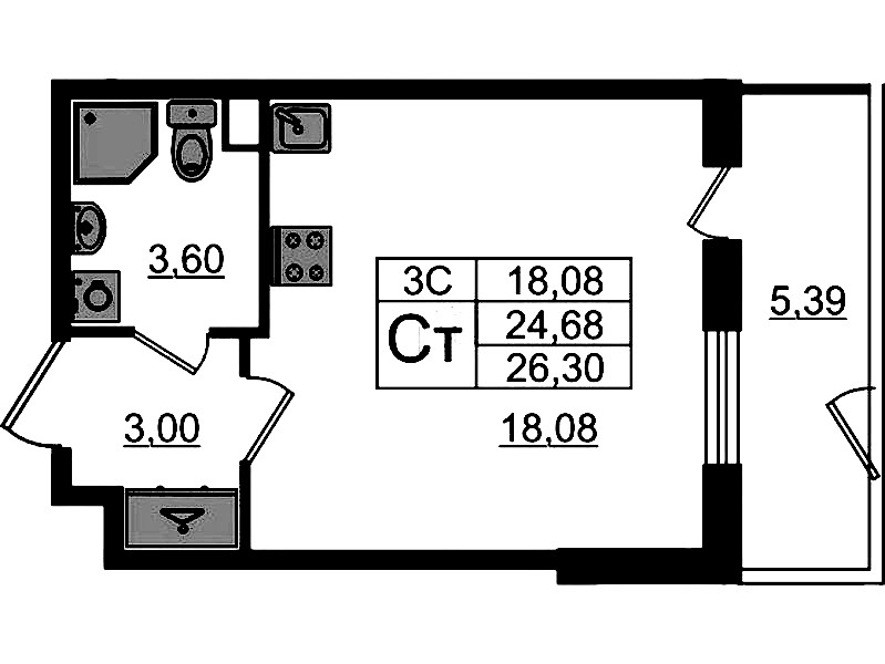 - Площадь24,68 м2