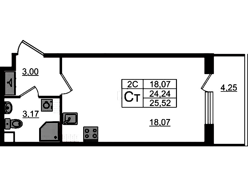 - Площадь24,24 м2