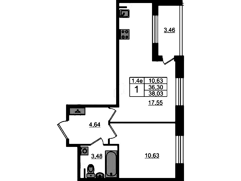 - Площадь36,3 м2