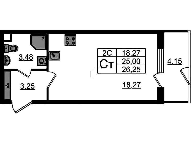 • Количество комнатСтудия