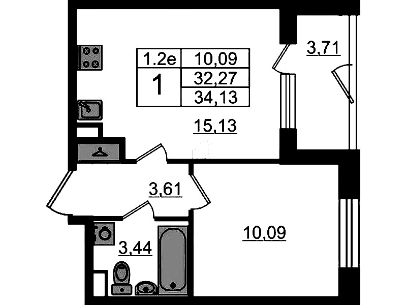 Однокомнатная квартира на 1-ом этаже 32,27 кв.м