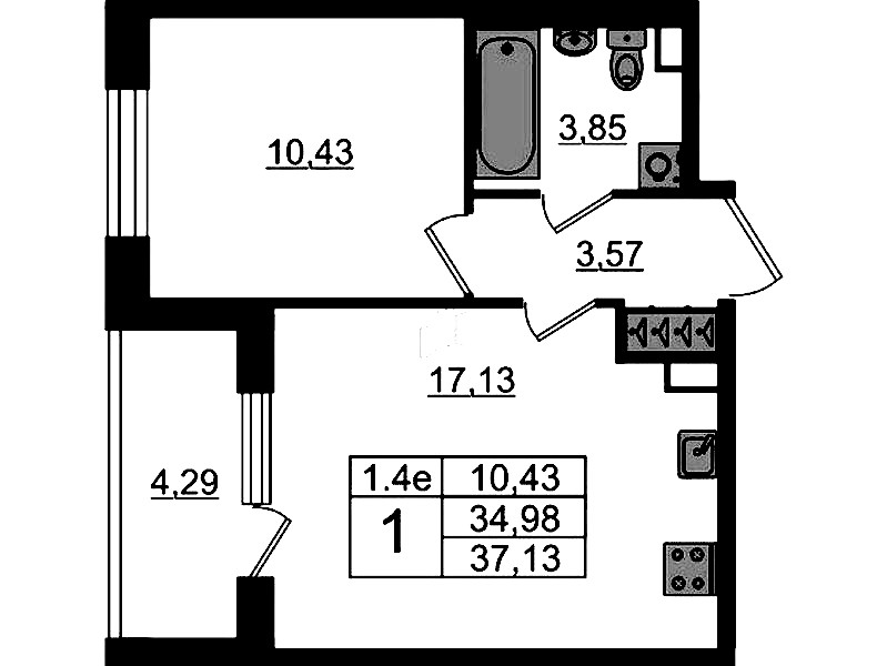 • Площадь34,98 м2