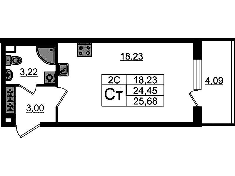 Квартира-студия на 2-ом этаже 24,45 кв.м
