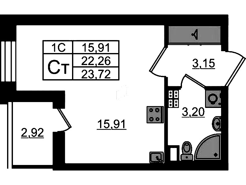 • Площадь22,26 м2
