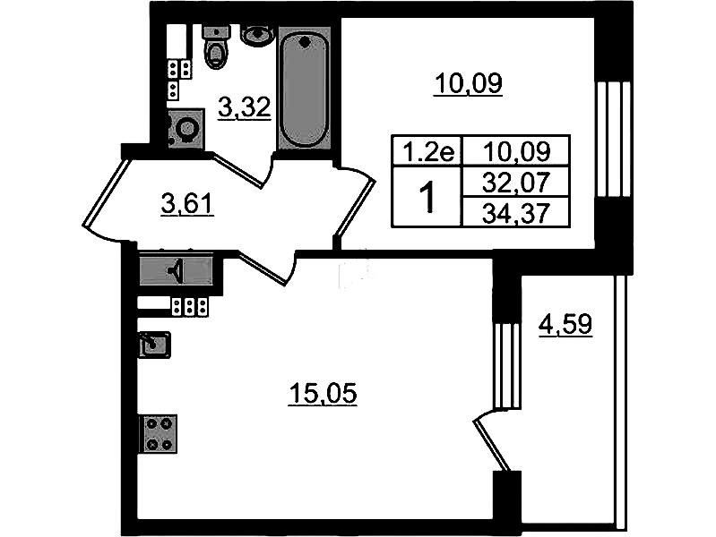 • Площадь32,07 м2