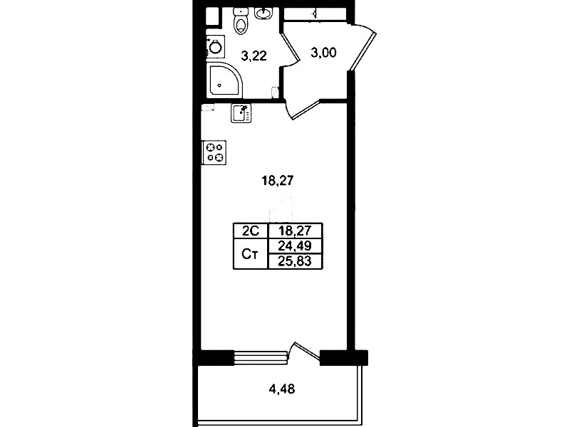 - Площадь24,49 м2